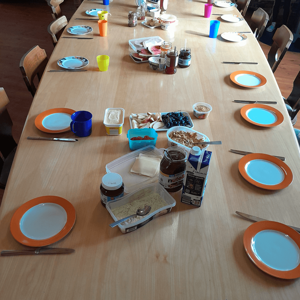 Nur Frühstück oder auch vier Mahlzeiten am Tag für unsere kleinen und großen Gäste sind machbar. Letzteres ist natürlich sinnvoll, wenn die Kindergruppen in den Ferien Zeit ohne ihre Eltern verbringen. Wenn verschiedene Gruppen zusammenkommen, organisieren wir das ganz nach Bedarf. Verhungert ist hier definitiv bislang noch keiner. Ein grosser Kühlschrank und eine gut ausgestattete Küche machen es angenehm und easy.